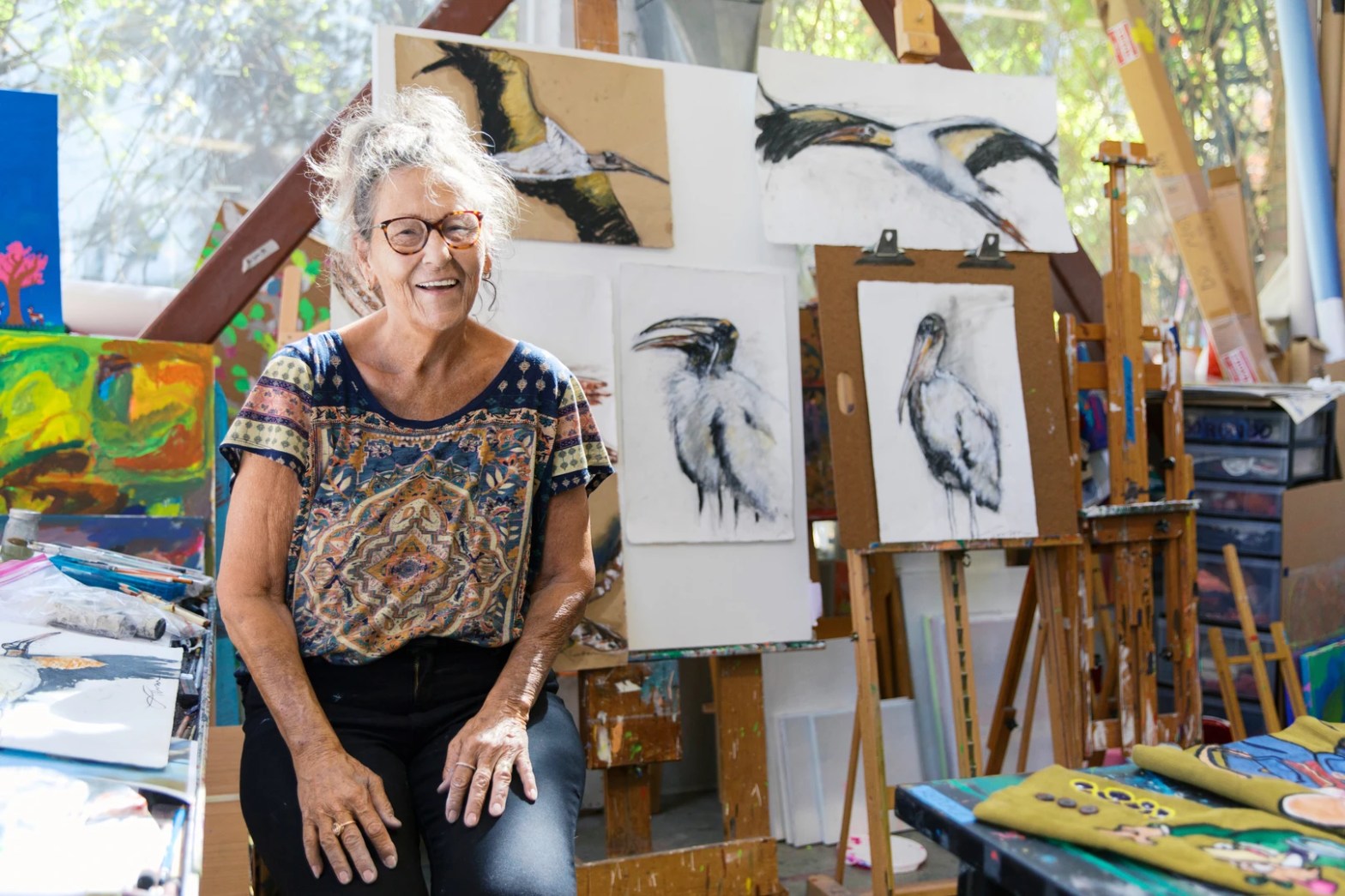 When Franna Lusson embarks on one of her wildlife portraits, she doesn’t bother with practice sketches. She dives right in on the final sheet of paper—drawing and redrawing in bold, expressive lines until she’s satisfied. “I work very instinctively and intuitively,” explains the Bay Area-based artist. “That’s why I erase so much, because I just have to work it until I get it right—until I can live with it.” Her mixed-media pieces aim to capture not only physical characteristics, but also what she calls the “elemental aspect” of an animal, or the feeling it evokes.